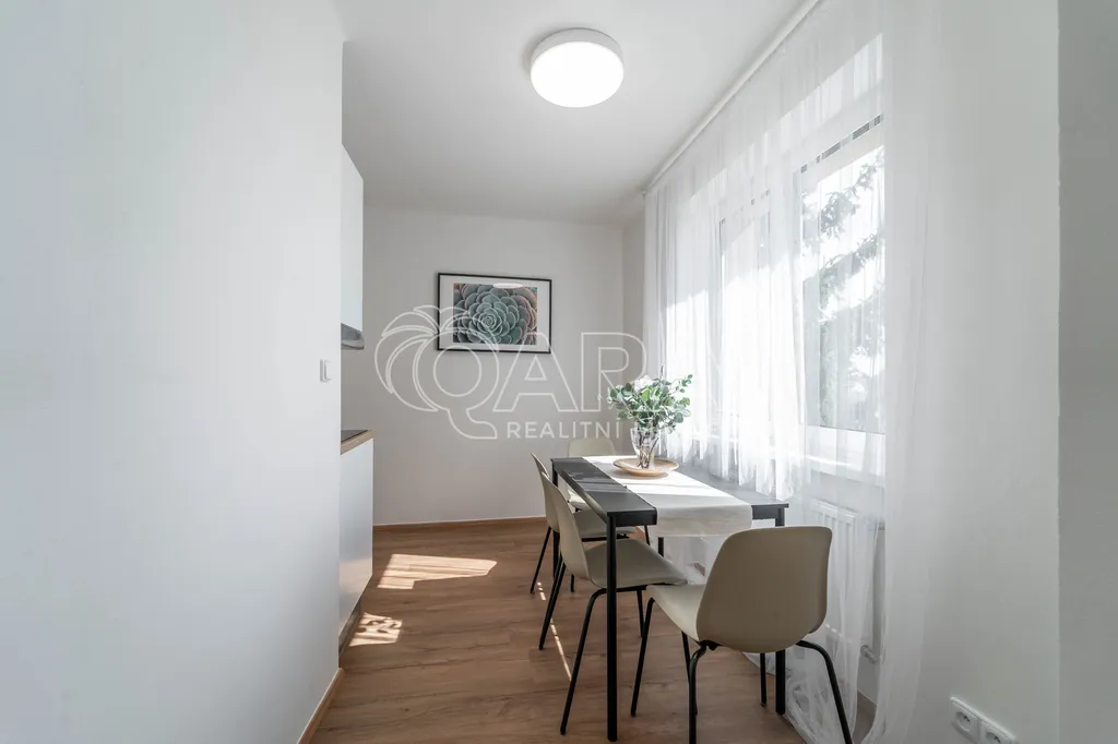 Kompletně nový interiér bytu byl navržen s důrazem na detail a kvalitu s využitím nejmodernějších technologií tak, aby splňoval vysoké požadavky na pohodlné a praktické bydlení. Otevřený koncept obývacího pokoje a kuchyně vytváří příjemný prostor pro rodinné setkávání nebo večírky s vašimi přáteli. Moderní kuchyňská linka je vybavena nejnovějšími spotřebiči včetně přípravy na vestavěnou pračku a nabízí dostatek úložného prostoru pro všechny vaše kulinářské potřeby. Navržena byla ve spolupráci s renomovanou značkou Oresi a je na ni 10 let záruka.