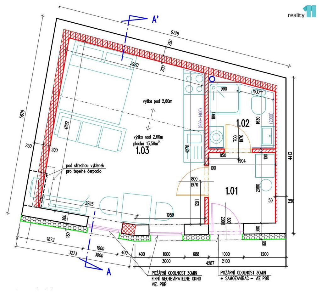 Tepelnou pohodu zajišťuje klimatizace a nízké provozní náklady pak zateplení polystyren 20cm a instalovaná centrální rekuperace.