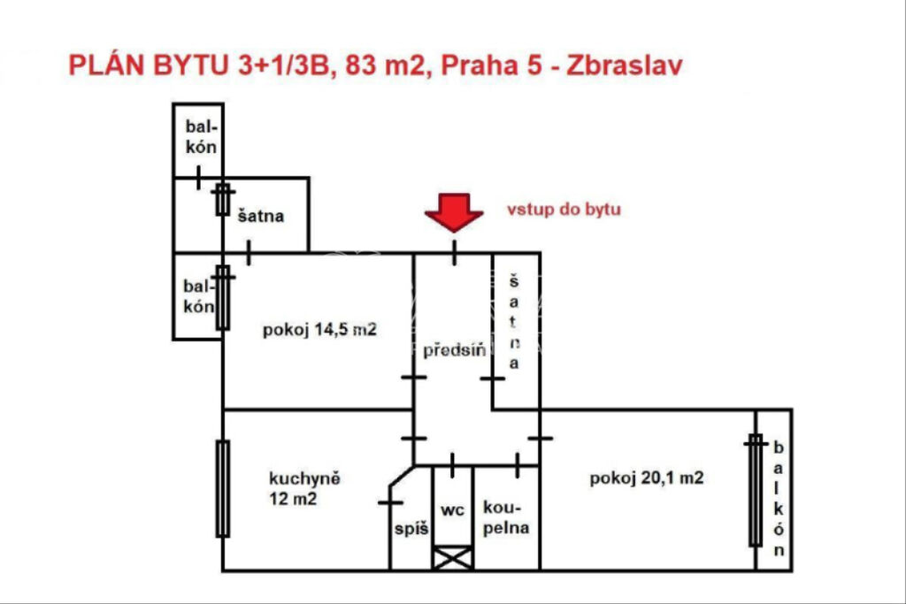 Nabízíme pronájem bytu 2+1/3B, 83 m2, s garážovým stáním, Praha 5 - Zbraslav. Byt je umístěný v 1. patře cihlového domu s výtahem. Garážové stání je v suterénu domu. Byt má velkou předsíň, ze které je vstup do dvou samostatných pokojů, kuchyně, šatny, koupelny a samostatného WC. V kuchyně je spíž a u malého pokoje je ještě šatna s druhým balkónem částečně zastřešeným. Zařízeno kuchyňskou linkou, el. sporákem, vestavěné skříně v předsíni a v šatně, dále pračka v koupelně. Volné od 1. října. Jistota 40.000 Kč, poplatky 6 400 Kč/měs./2 os. + elektřina 2.000 Kč. Provize 25.000 Kč. Volejte a domluvte si prohlídku.