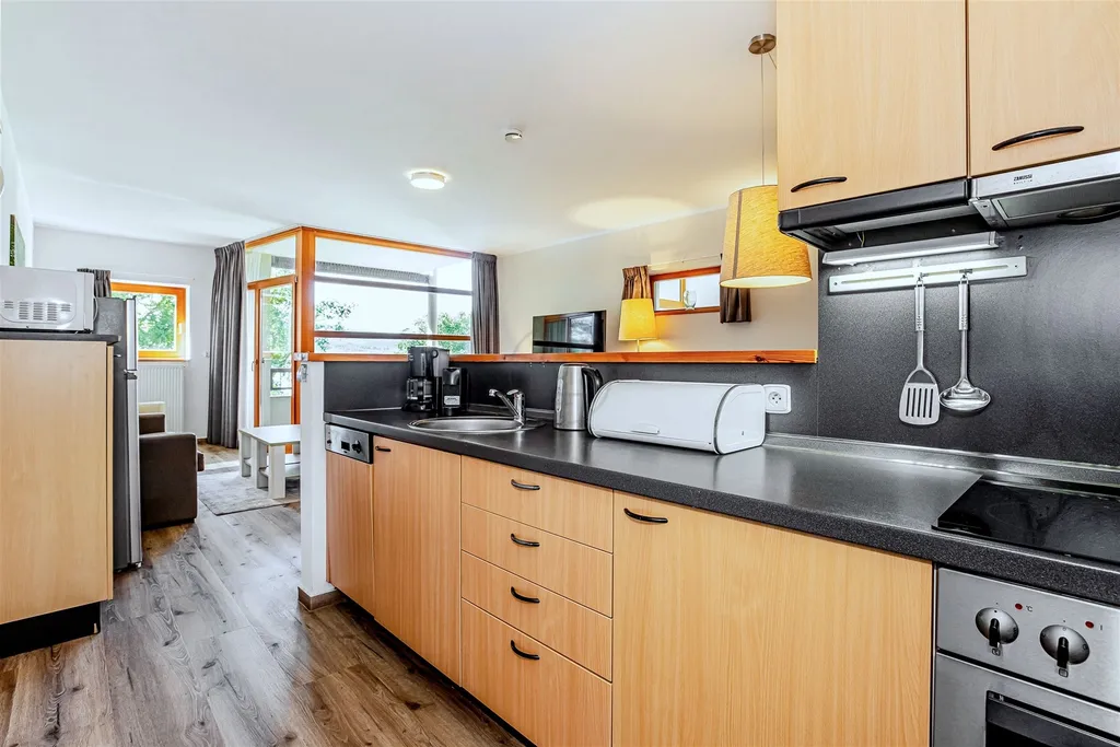 Jedná se o funkčně řešený apartmán 3+kk, ze zádveří je přístupná koupelna, samostatné WC a dvě ložnice. Dále prostor navazuje do obývacího pokoje spojeného s kuchyní a vstupem na balkon s jedinečným výhledem na plachetnice a vodní plochu.