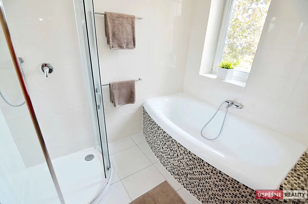 Exkluzivně Vám v zastoupení majitele nabízíme ke koupi samostatný byt v osobním vlastnictví, v rodinném domě o celkové dispozici 4+1 (116m2), v prvním patře s balkonem (15m2), rovinatou zahradou o velikosti  (127,91m2) ve výlučném užívání a  (139,83m2 ) ve společném užívání. K bytu dále náleží sdílená garáž (vlastní plocha 15m2), venkovní parkovací stání, sklad (3,43m2), další společné prostory v domě, zahradní domek.