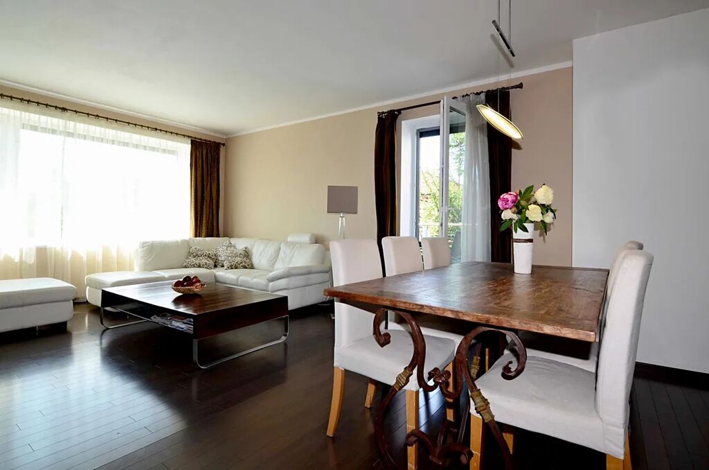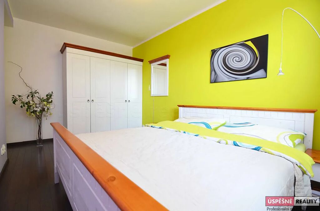 Dispozice bytu: chodba, koupelna s vanou, sprchovým koutem a podlahovým topením, samostatné WC. Dále ložnice s klimatizací, 1x pokoj, 1x pracovna, samostatná kuchyň, balkon. Dominantou tohoto bytu je prosluněný obývací pokoj s kvalitními krbovými kamny zn. Hakr.