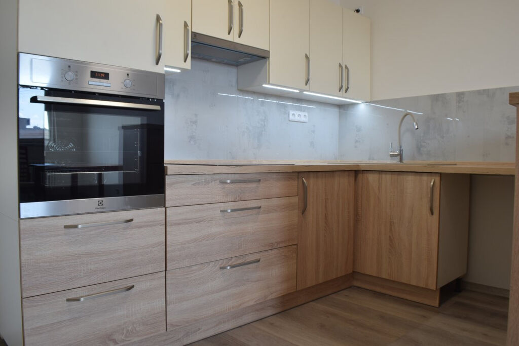 Byt se nabízí částečně vybavený. Kuchyně disponuje indukční varnou deskou, troubou a digestoří. Je tam připraveno místo na pračku případně myčku. Byt je nový po kompletní rekonstrukci Obývací část je spojený s kuchyňským koutem a disponuje jedním z balkonu. Druhý pokoj je neprůchozí a má také svůj vstup na další balkon s výhledem na Beskydy. Koupelna nabízí sprchový kout a je umístěna samostatně, stejně jako toaleta.