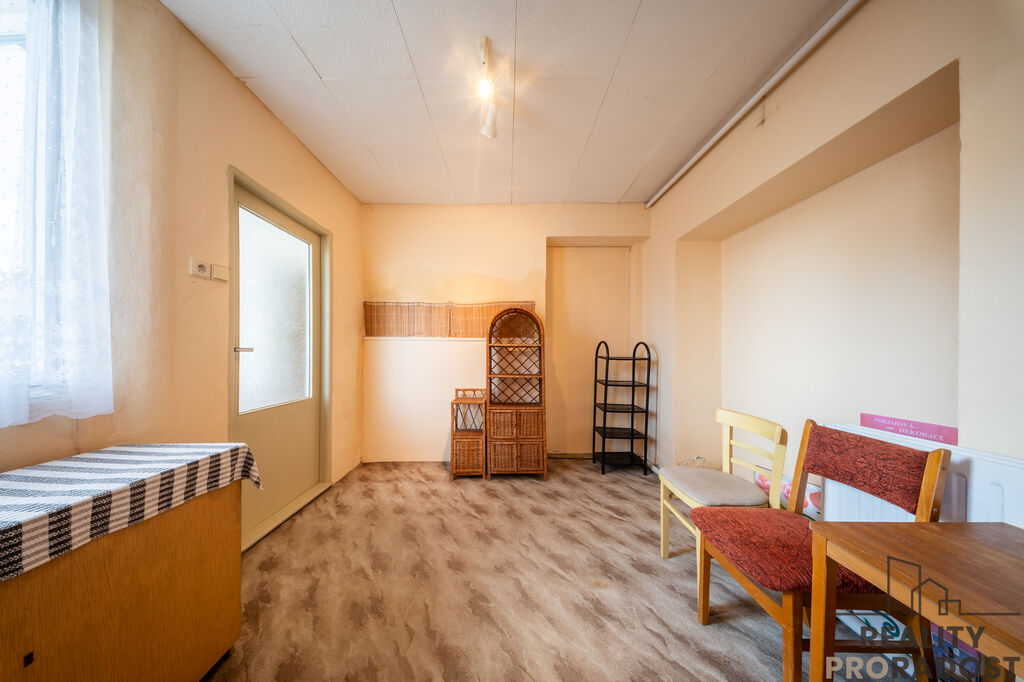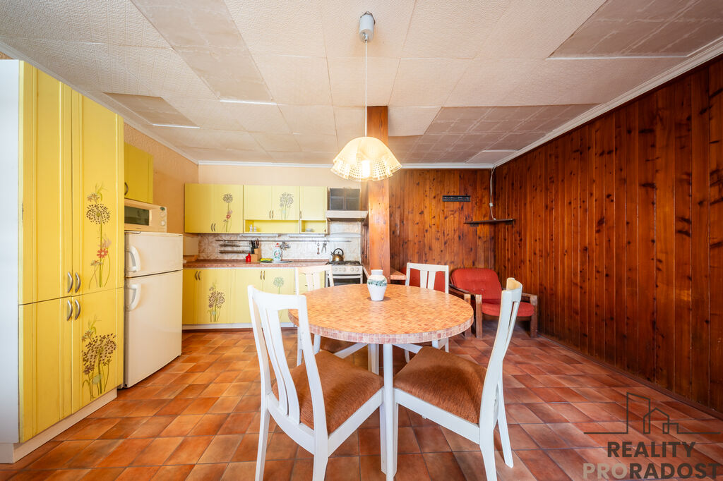 Dům je přízemní, v průběhu let prošel postupnými úpravami – výměna oken, venkovních dveří, fasáda, zahrádka a vstupní prostor před domem. Je v původním, udržovaném stavu, je obyvatelný, ale spíše určený k rekonstrukci, aby odpovídal současným požadavkům moderního bydlení. Šířka domu je cca 16 m, celková výměra pozemku je 733 m2, je připojený na všechny IS ( obecní vodovod, kanalizace, elektřina a plyn) , velkou výhodou a úsporou je kopaná funkční studna.
