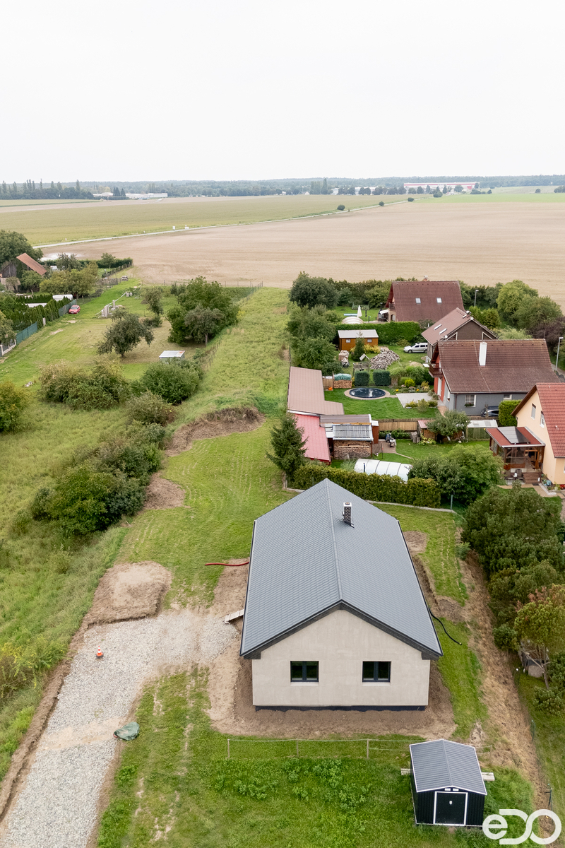 Užitná plocha domu je 96,9 m² a náleží k němu prostorná zahrada o rozloze 1 860 m². Ve vlastnictví je také příjezdová cesta přibližně 210 m². Do domu je zavedena elektřina, voda a odpad je napojen na veřejnou kanalizaci. Vytápění bude řešeno podlahovým topením a tepelným čerpadlem.