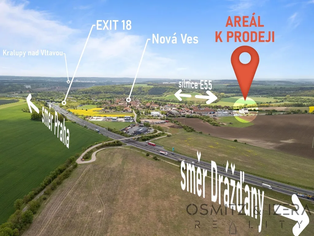 Komerční pozemek 3671 m2 u sjezdu na dálnici D8.