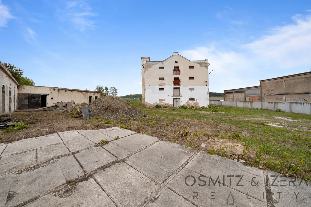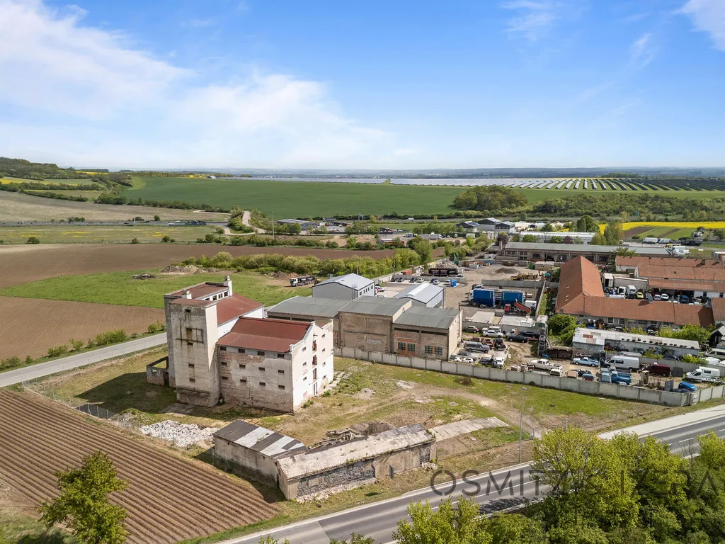 Pozemku dominuje velká 6-ti patrová budova sušičky s variabilním využitím a celkovou výškou 18 m který je v lokalitě dominantní dobře vidět z dálnice - ideální reklamní plocha.