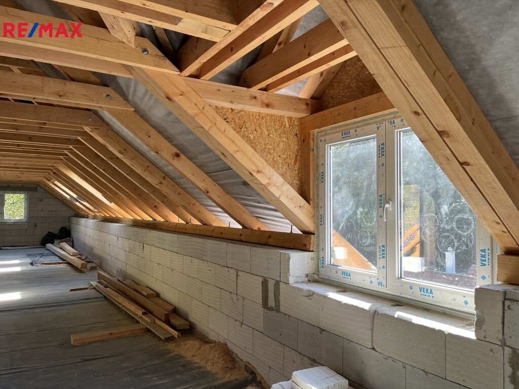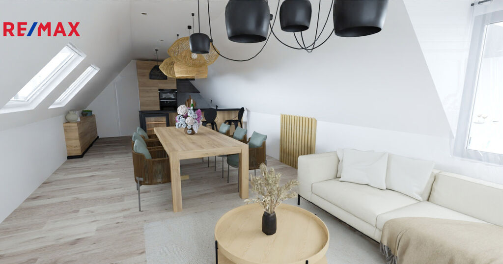 Byt se nachází v půdní vestavbě domu a disponuje novou střechou, novými okny a vlastním samostatným vstupem, což zajišťuje soukromí i komfort. V projektu je navržena dispozice 4+1, ale finální uspořádání si můžete navrhnout sami – a vytvořit si tak domov přesně na míru.