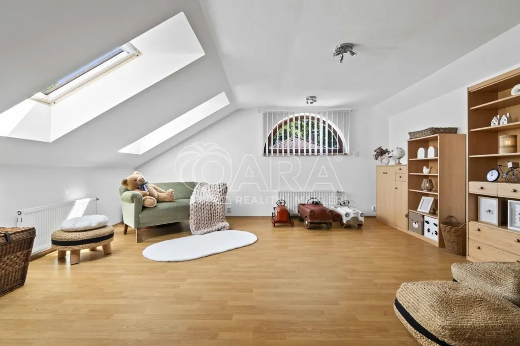 Uvnitř vás čeká pět samostatných a prostorných ložnic, více než šedesátimetrový obývací pokoj, rozdělený na klidovou a společenskou zónu s kulečníkovým stolem a krbem a v suterénu najdete ještě i fitness a společenskou místnost, kde se potkává rodina i přátelé.