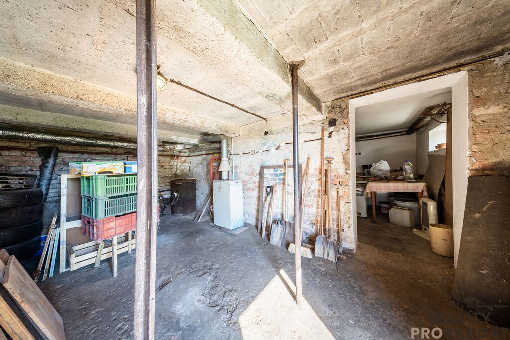 Dům je podsklepený a je zde garáž, kotelna a dílna.