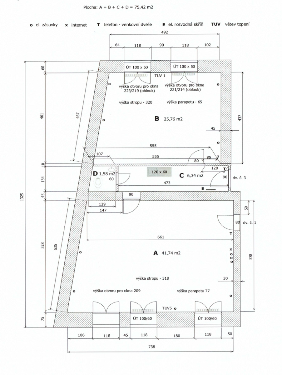 Prostory jsou po rekonstrukci – k dispozici jsou plovoucí podlahy, nová sanita a také praktický kuchyňský koutek, který lze využít jak pro osobní účely, tak i pro pohodlí vašich klientů.