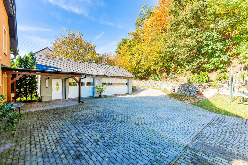 Na pozemku o celkové výměře 3 246 m² se nachází také nová prostorná garáž s kapacitou pro tři auta a půdním prostorem dále idylické venkovní posezení.