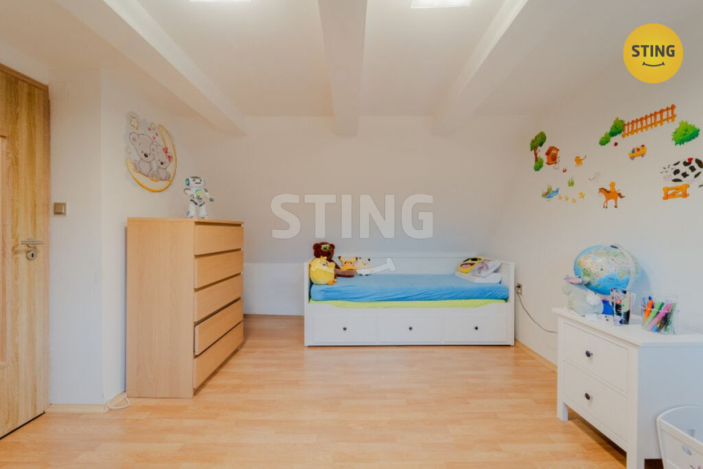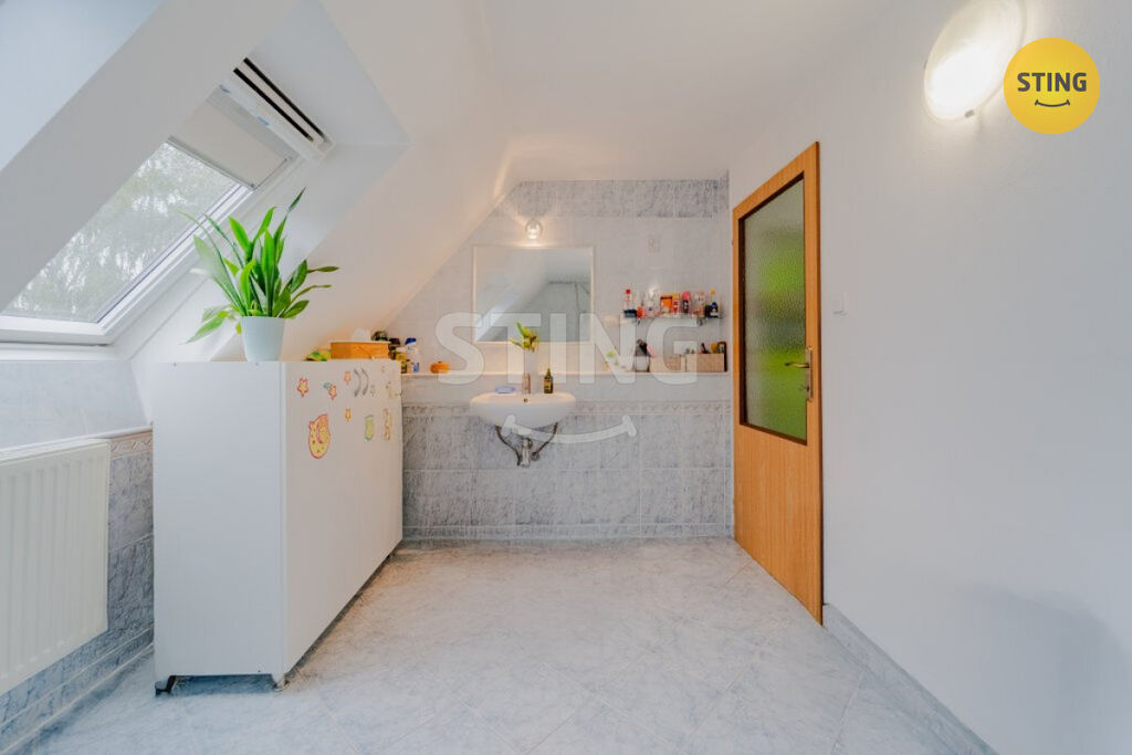 Podkroví: tři samostatné pokoje a druhá koupelna.
