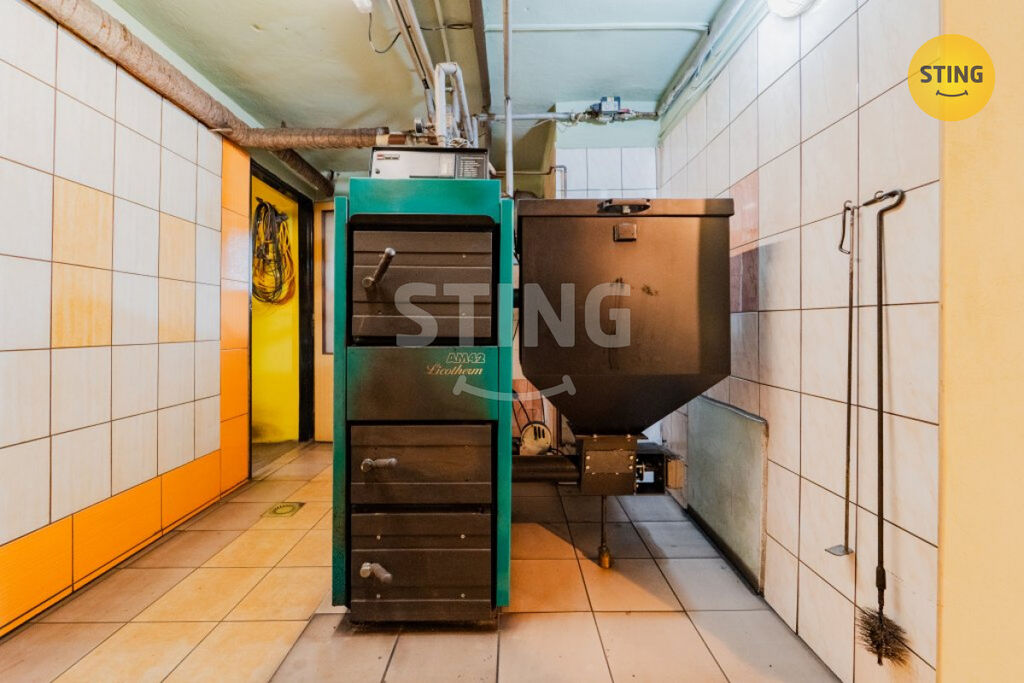 Suterén: garáž, technické místnosti a kotelna. Vytápění domu zajišťuje kotel na tuhá paliva s ústředním topením.
