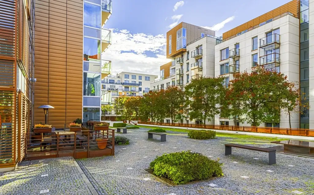 Rezidenční areál Korunní Dvůr je známý svým vysokým standardem a komfortem pro své obyvatele. K dispozici je nonstop recepce, bezpečnostní služba a pečlivě udržovaný vnitroblok s lavičkami a zelení ideální místo pro odpočinek v srdci města.