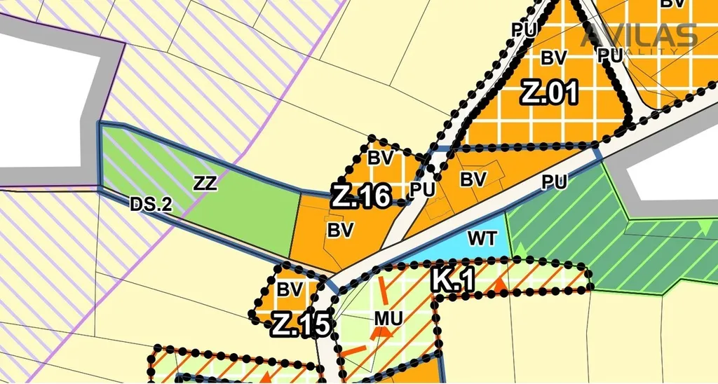 − veřejná prostranství včetně místních komunikací pro obsluhu vymezené plochy, pěších a cyklistických cest a ploch okrasné a rekreační zeleně, s prvky drobné architektury