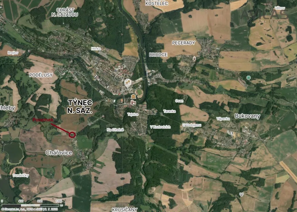 LOKALITA: Obec Chářovice je příměstská část Týnce nad Sázavou. Město Týnec nad Sázavou a jeho okolí nabízí možnosti ke spoustě aktivit a mnoho dalšího - rybaření, houbaření, cykloturistika, fotbalové a volejbalové hřiště, tenisové kurty, půjčovna lodí a raftů, v okolí golfové areály - Pyšely, Štiřín, Konopiště, v zimních měsících možnost běžkaření atd. Ve městě se nachází veškerá občanská vybavenost: škola, školka, poliklinika, obchody, služby, vlakové a autobusové nádraží. Benešov 10 min., Praha 35. min. Již probíhají přípravy pro vybudování plánovaného přivaděče - Týnec n/S - dálnice D3, což urychlí dojezd do Prahy.