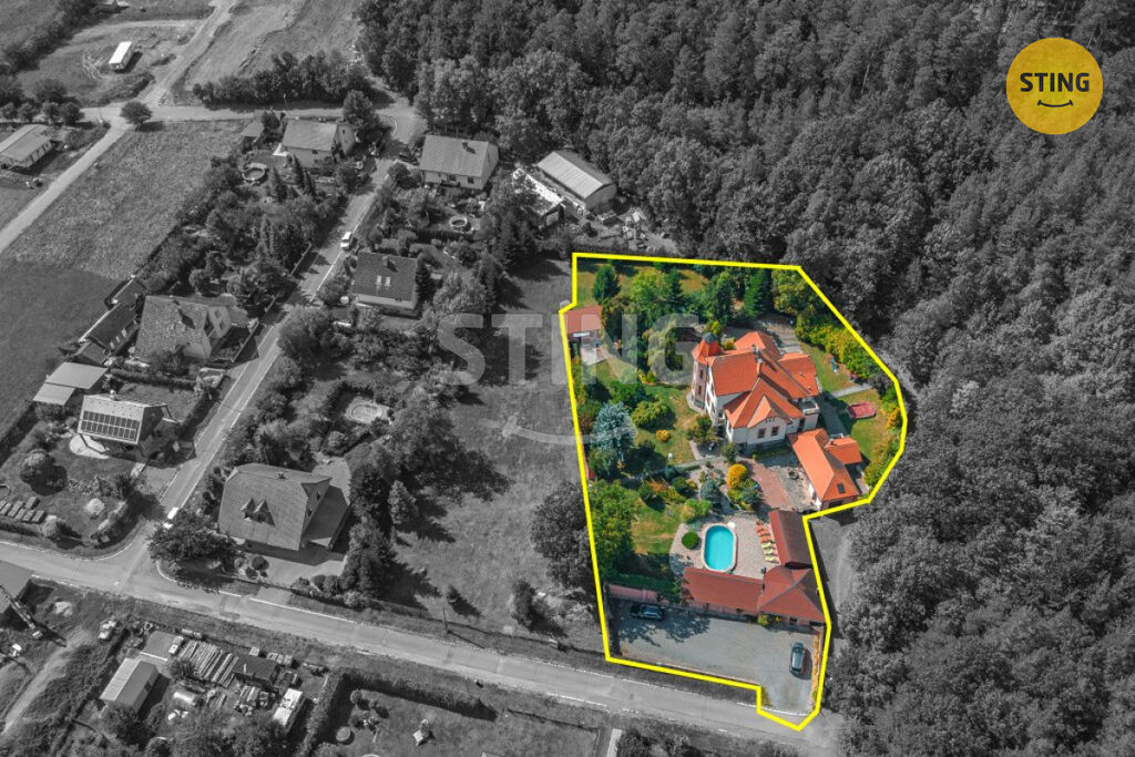 Příslušenstvím nemovitosti je vlastní parkoviště, prostorná samostatně stojící garáž s technickým zázemím, bazén, letní kuchyně s grilem a prostornou krytou pergolou vhodnou k rodinným oslavám či posezení s přáteli, ve vedlejší přístavně je klubovna, krytá terasa, dále sklad dřeva, kolárna. Děti ocení pískoviště či zahradní kolotoč. K domu náleží vzrostlá okrasná zahrada o výměře 2423 m2 s mnoha zákoutími, altánem a místy ke klidnému posezení. Dostatek klidu a soukromí zajistí samotné umístění domu v klidné okrajové části obce a vysoké zděné oplocení pozemku. Bezpečnost objektu zajišťuje nainstalovaný kamerový systém. K domu je možné dokoupit samostatný navazující pozemek o výměře 2207 m2 a stavbu tak rozšířit dle potřeb budoucích vlastníků.