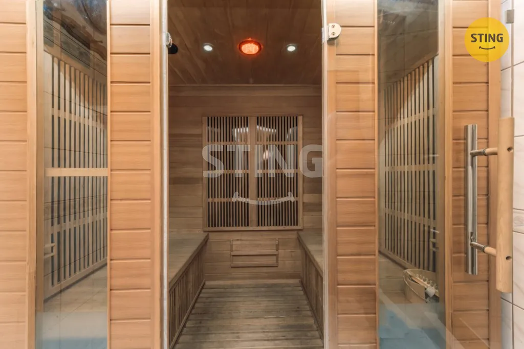 • Příslušenství: garáž s technickým zázemím, letní kuchyně s grilem a krytou pergolou, bazén