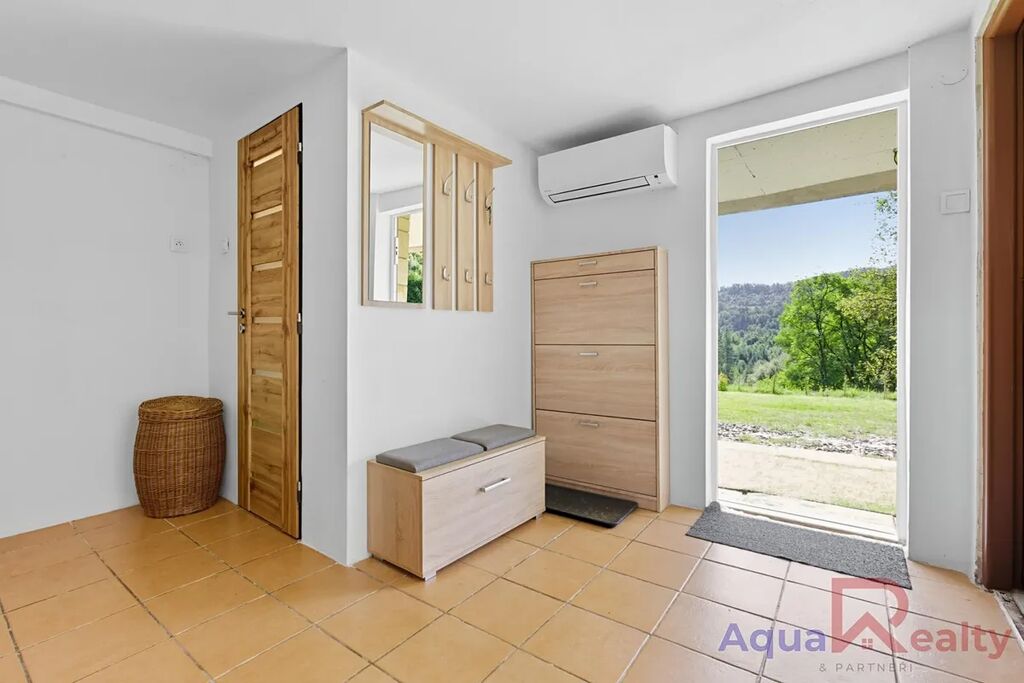 Nabízíme k prodeji prostornou a plně vybavenou chatu o dispozici 5+kk s přibližnou užitnou plochou 82 m2 a pozemkem o celkové ploše 1 255 m2 v malebném prostředí Radošova u Kyselky. Chata má tři nadzemní podlaží a je připravena k okamžitému užívání. Byla postavena v roce 1990 a v letech 2024 a 2025 prošla rozsáhlou rekonstrukcí, která zahrnovala zateplení střechy a stropů minerální vatou o tloušťce 15 cm, zateplení fasády polystyrenem o tloušťce 15 cm a odizolování terénu kolem domu do hloubky 120 cm. Střecha je sedlová s hliníkovou krytinou, stropy jsou z hurdisek se sádrokartonovým podhledem a okna plastová s trojskly, což zajišťuje výbornou izolaci i klid v interiéru. Podlahy jsou řešeny kombinací plovoucí podlahy a keramické dlažby, které spojují útulnost a snadnou údržbu.