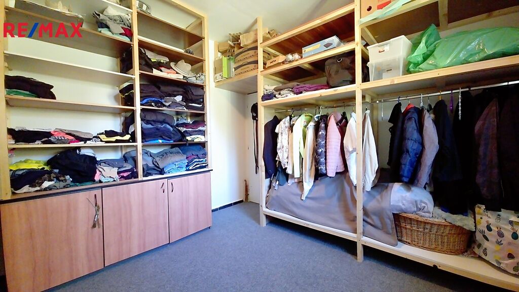 Dostatečné úložné prostory zahrnují sklep o velikosti 15 m² a stodola, která nabízí prostor pro uskladnění potřebných věcí a vozidel. Dům je napojen na veřejný vodovod a odpad je řešen septikem. Elektřina je k dispozici ve fázi 230 V a s 25A jističem, což splňuje běžné požadavky moderního bydlení.
