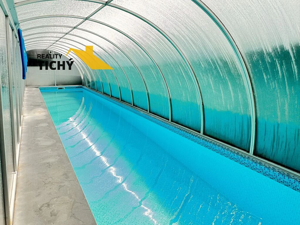velký zastřešený bazén 2,2 x 13,5 m → můžete plavat od jara do podzimu