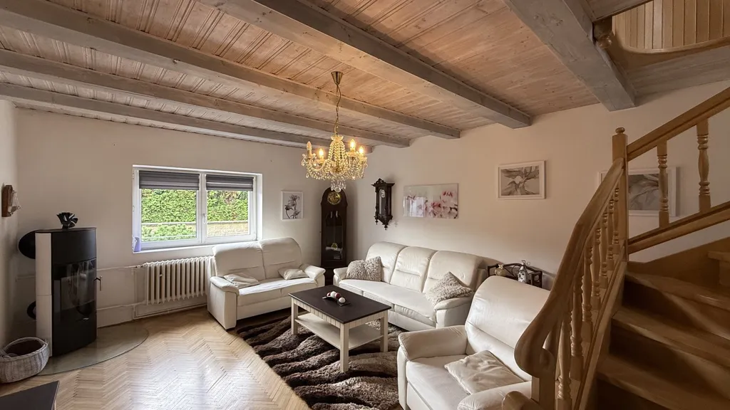 Dům je vytápěn plynovým kotlem, v obývacím pokoji lze využívat krbová kamna.