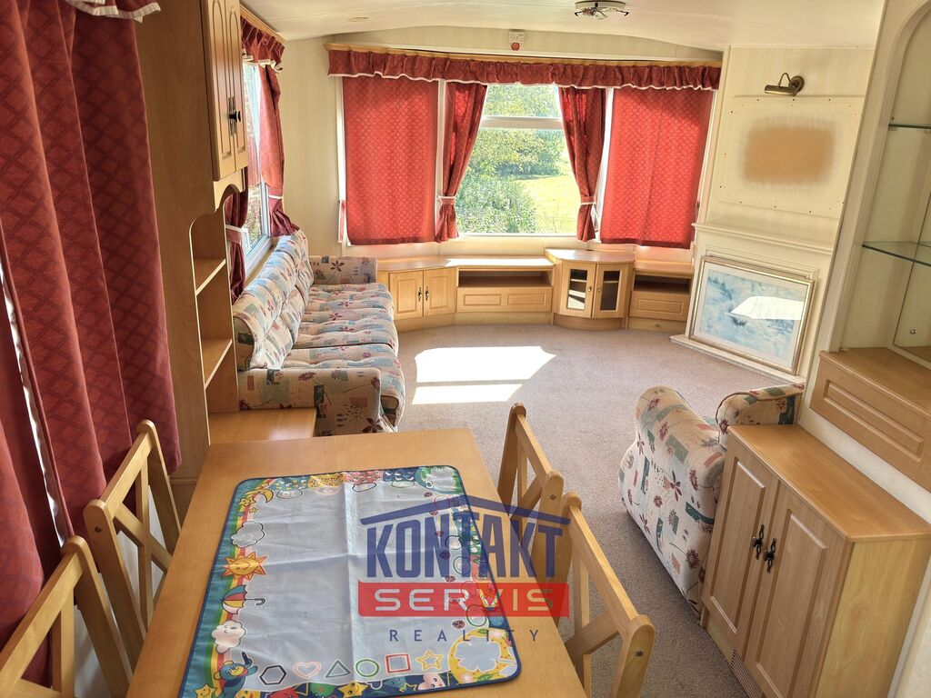 Nabízíme ke koupi kompletně vybavený mobilní dům o velikosti 11 x 3,7 m s užitnou plochou 40m2. Vnitřní uspořádání zahrnuje prostorný obývací pokoj, oddělená kuchyně s jídelním koutem, 2 ložnice, toaletou a koupelnu se sprchovým koutem. Mobilní dům je zateplený, vybaven plastovými okny s izolačními skly, díky čemuž je ideální i pro celoroční provoz.