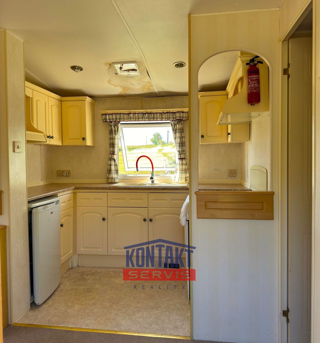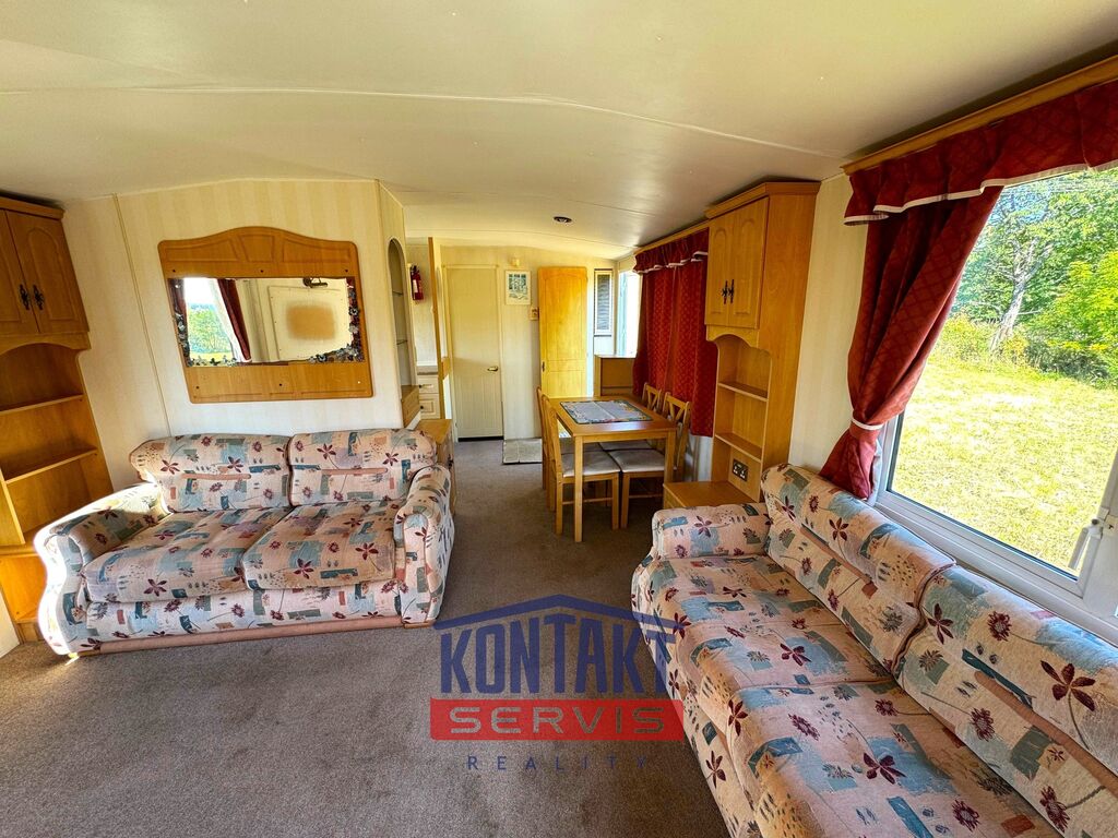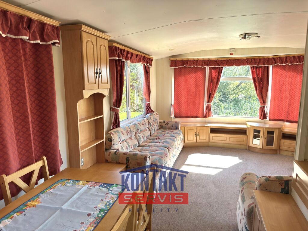 Nabízíme ke koupi kompletně vybavený mobilní dům o velikosti 11 x 3,7 m s užitnou plochou 40m2. Vnitřní uspořádání zahrnuje prostorný obývací pokoj, oddělená kuchyně s jídelním koutem, 2 ložnice, toaletou a koupelnu se sprchovým koutem. Mobilní dům je zateplený, vybaven plastovými okny s izolačními skly, díky čemuž je ideální i pro celoroční provoz.