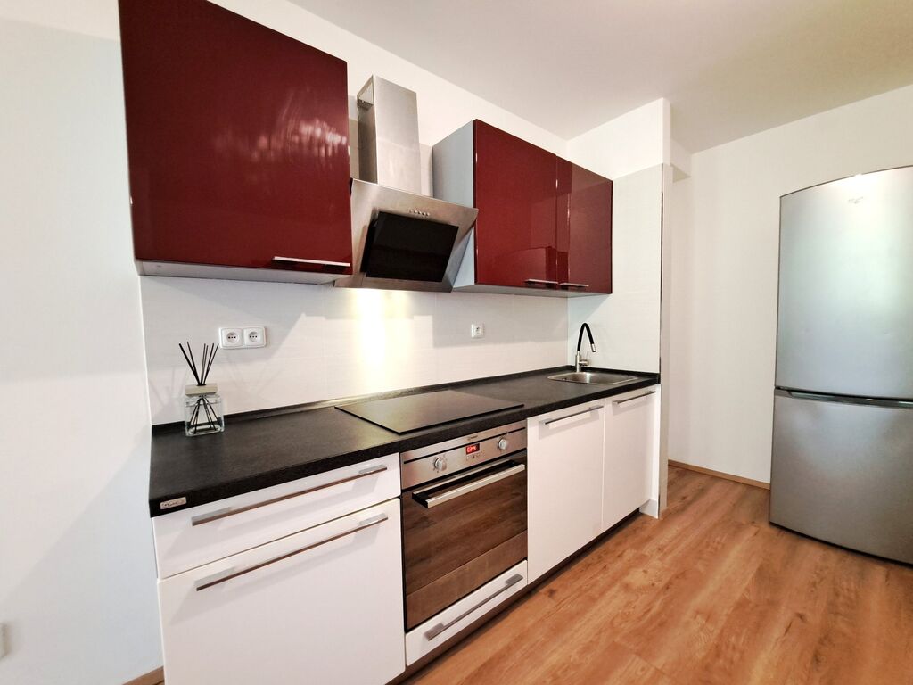 Zrekonstruovaný pěkný byt s kuchyňskou linkou Oresi, el. sporákem, ledničkou Whirpool, jinak nezařízeno.