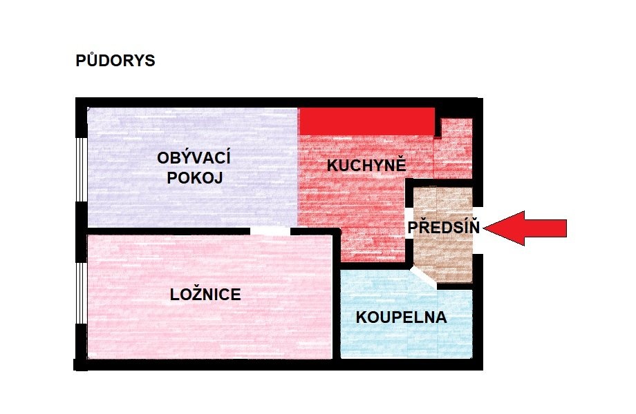 Nabízíme k pronájmu byt 2kk v přízemí třípodlažního zděného bytového domu.