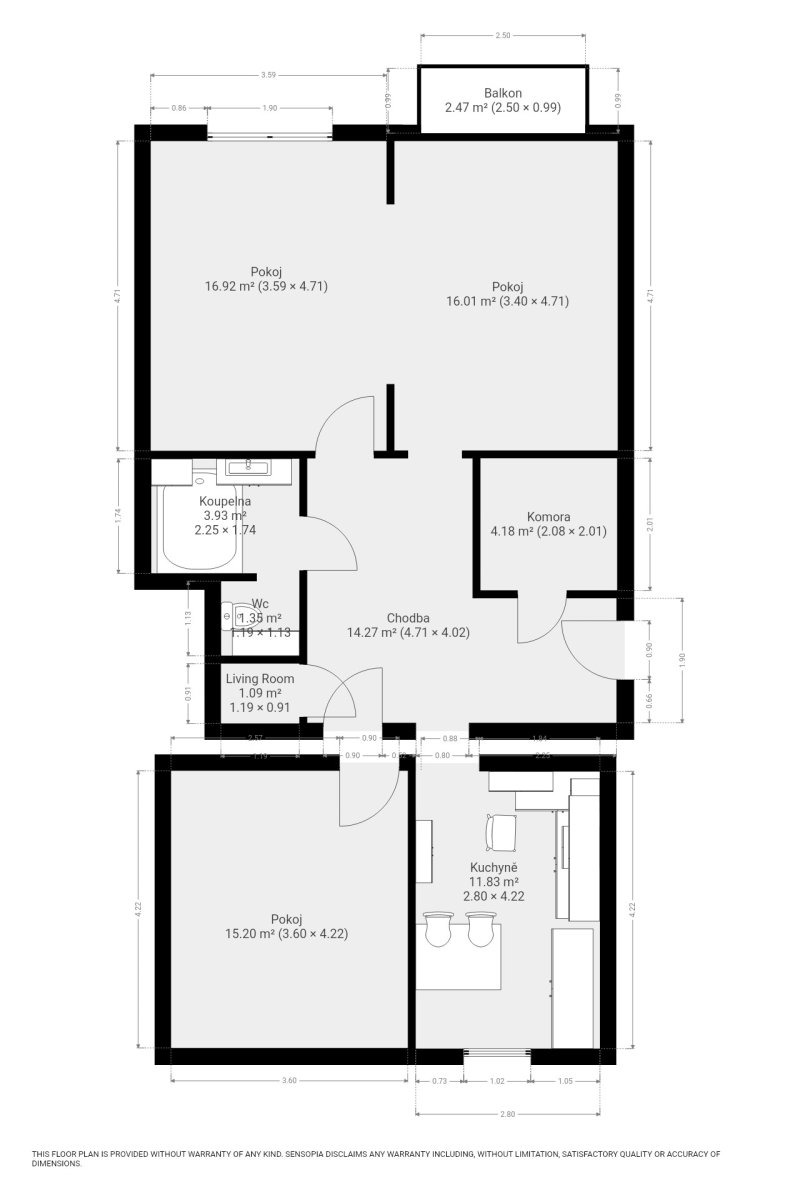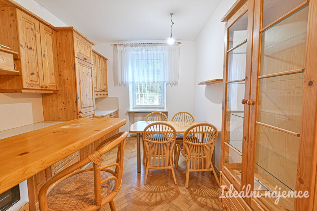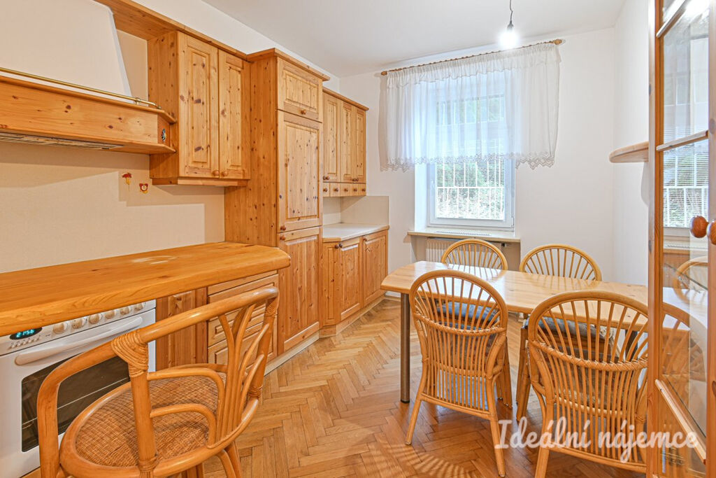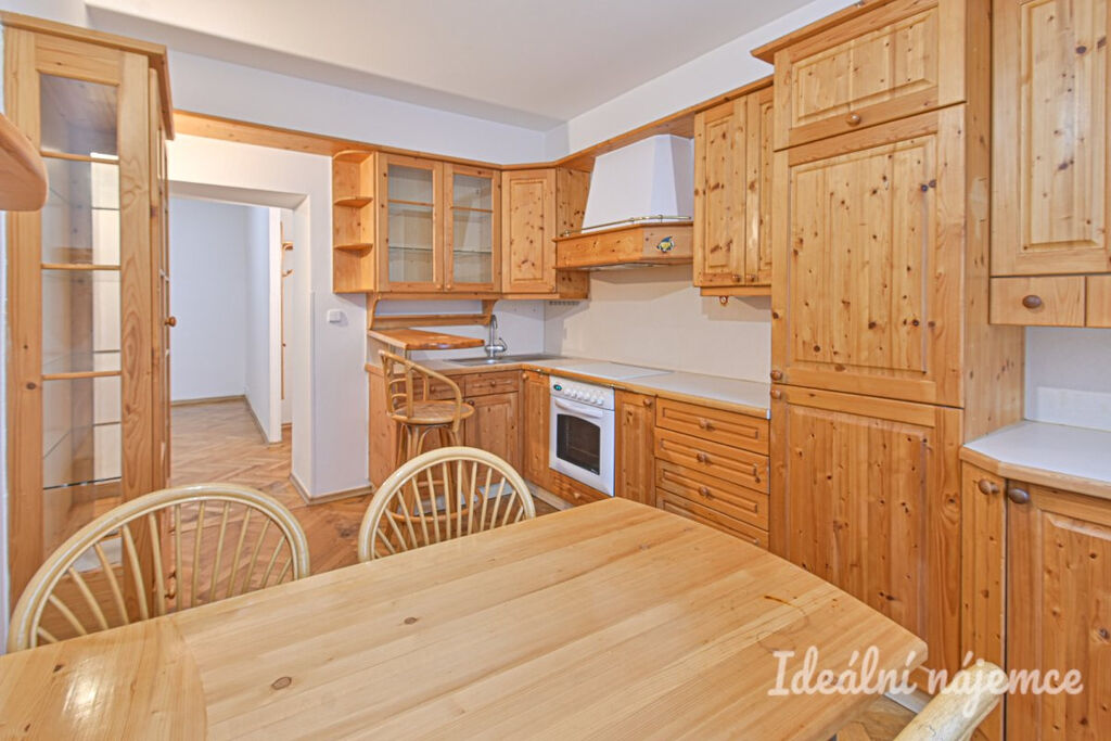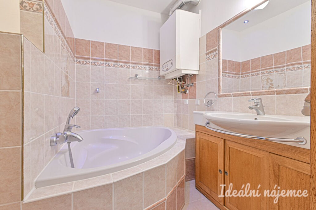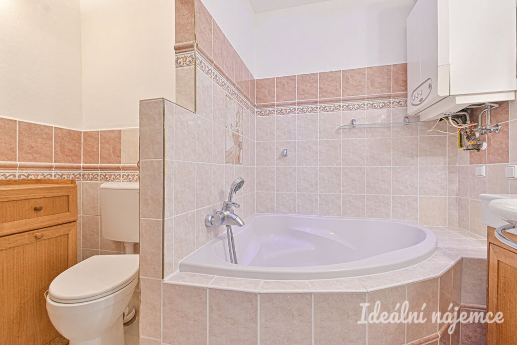 Byt tvoří samostatná kuchyně vybavená kuchyňskou linkou s elektrickou troubou, varnou deskou a digestoří. V koupelně se nachází rohová vana, umyvadlo a toaleta. K bytu náleží také balkon a sklepní prostory. Byt se nabízí vybavený dle fotografií.