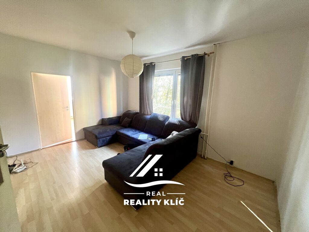 Dispozičně byt nabízí tři pokoje, z nichž jeden slouží jako obývací pokoj, dále samostatnou kuchyň s kuchyňskou linkou, koupelnu a samostatné WC. Součástí prodeje zůstávají vestavěné skříně a kuchyňská linka. K bytu náleží dvě sklepní kóje, které poskytují dostatek úložného prostoru.