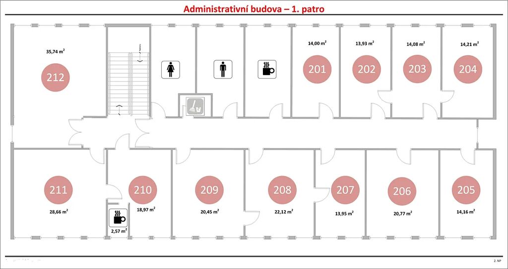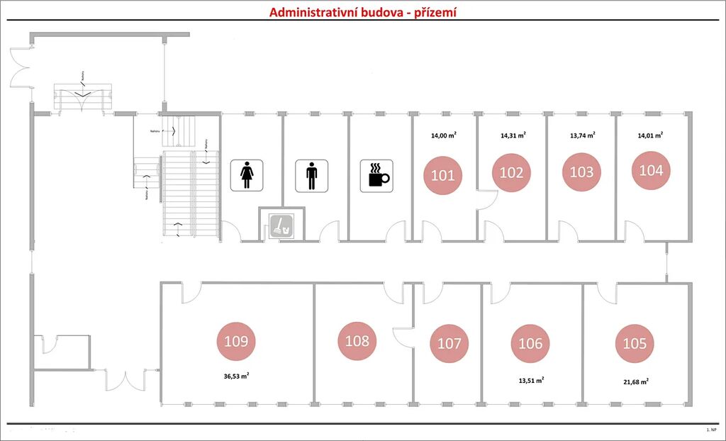 2x kancelář 22m2 (č.108), 21m2 (č.107)