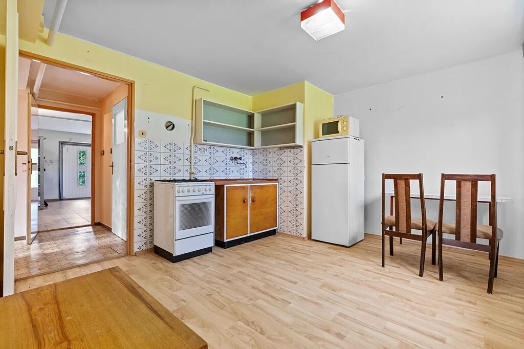 Tento rodinný dům prošel částečnou rekonstrukcí: nová fasáda a zateplení, střešní krytina, plastové okna. Příjezdová cesta vede pohodlně až k domu.