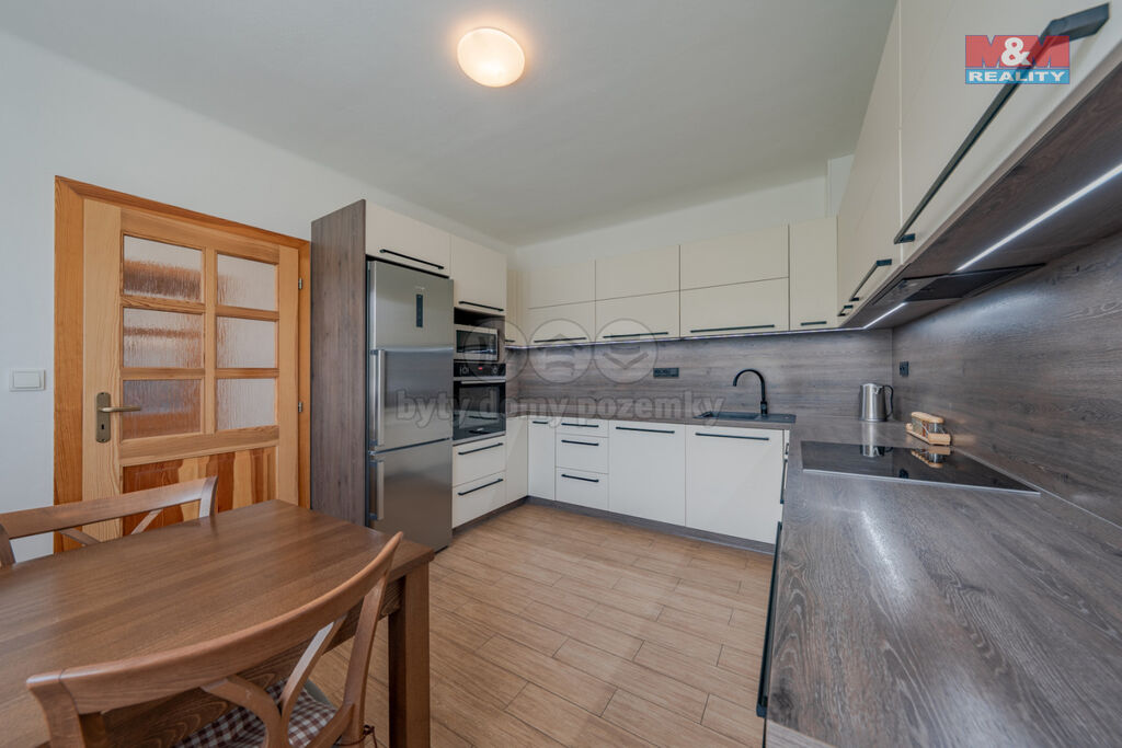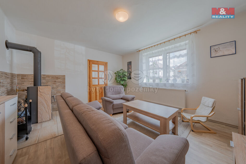 Nabízíme k prodeji jednopodlažní řadový rodinný dům nacházející se na kraji obce. Dům je po rekonstrukci vnitřních prostor s možností okamžitého bydlení a nízkými provozními náklady. Je napojen na veškeré inženýrské sítě. V přízemí najdeme obývací pokoj s krbovými kamny, prostornou kuchyň, průchozí dětský pokoj, ložnici, koupelnu s WC a technickou místnost s výstupem na dvorek, kterým projdeme na hodně svažitou zahradu.