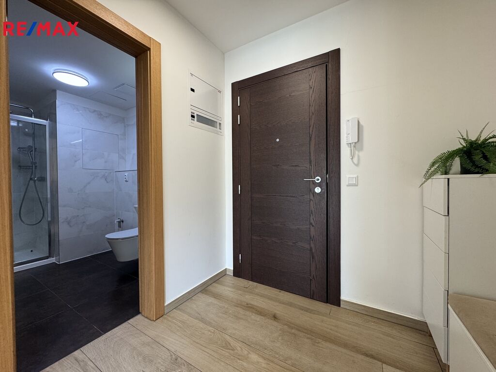 Nabízíme k pronájmu hezký a moderní byt 2+kk o evidované výměře 60,14 m² ve vyhledávané lokalitě na ulici Třída Jiřího Pelikána, Olomouc. Byt se nachází v 1.NP (z celkových 4 NP) novostavby cihlového domu s orientací na Fort Galgenberg, tedy do klidové zóny. V bytě se nachází 2 obytné pokoje (31,13 m² a 15,86 m²), koupelna se sprchovým koutem včetně WC a předsíň. Měsíční poplatky: nájemné ve výši 16.500,- Kč + zálohy na služby (4.000,- Kč) a možnost pronájmu venkovní parkovací stání 1.500,- Kč. Byt je částečně zařízený (kuchyně - kuchyňský kout, lednice s mrazákem, myčka; obývací místnost - konferenční stůl, koberec, TV stolek a lampa; ložnice - pracovní stůl, šatní skříň, němý sluha; předsíň - skříň, komoda a botník). Vratná jistota je ve výši 20.500,- Kč. Provize RK ve výši jednoměsíčního nájmu + DPH. Dobrá pěší dostupnost na MHD (autobus 150 m, tramvaj 400m) či do centra města Olomouce (2 km). Byt je volný ihned. Bližší informace u makléře nabídky.