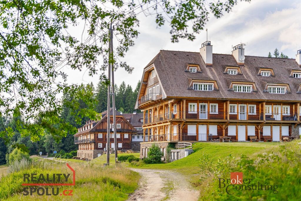 Dispozičně řešený jako 3+kk, apartmán nabízí prostorný obývací pokoj s krbem, který nejen navodí útulnou atmosféru, ale zároveň slouží jako efektivní zdroj tepla v zimních měsících. Interiér je navržen s důrazem na funkčnost, estetiku a dlouhodobou udržitelnost–od kvalitních podlahových krytin po izolační materiály, které zajišťují nízké provozní náklady.