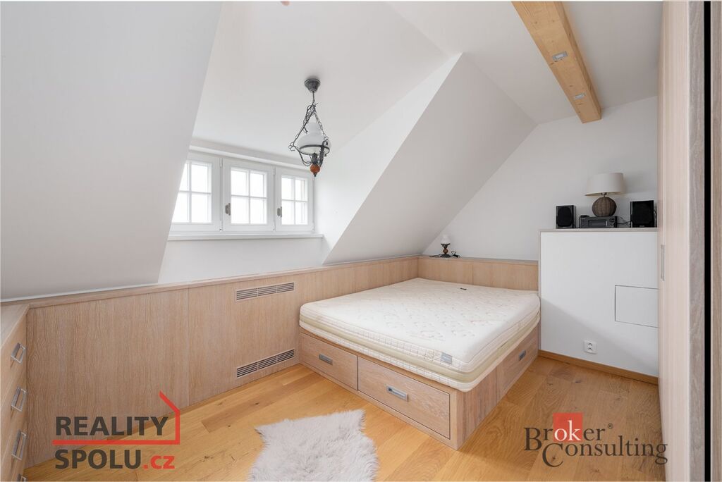 Po stylovém dřevěném schodišti se dostanete do podkroví, kde se nachází dvě ložnice s výhledem do okolní přírody. Celý prostor je promyšleně rozvržen tak, aby poskytoval maximální soukromí, klid a pohodlí pro každodenní odpočinek i společné chvíle s rodinou či přáteli.