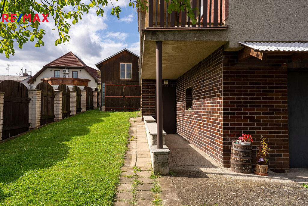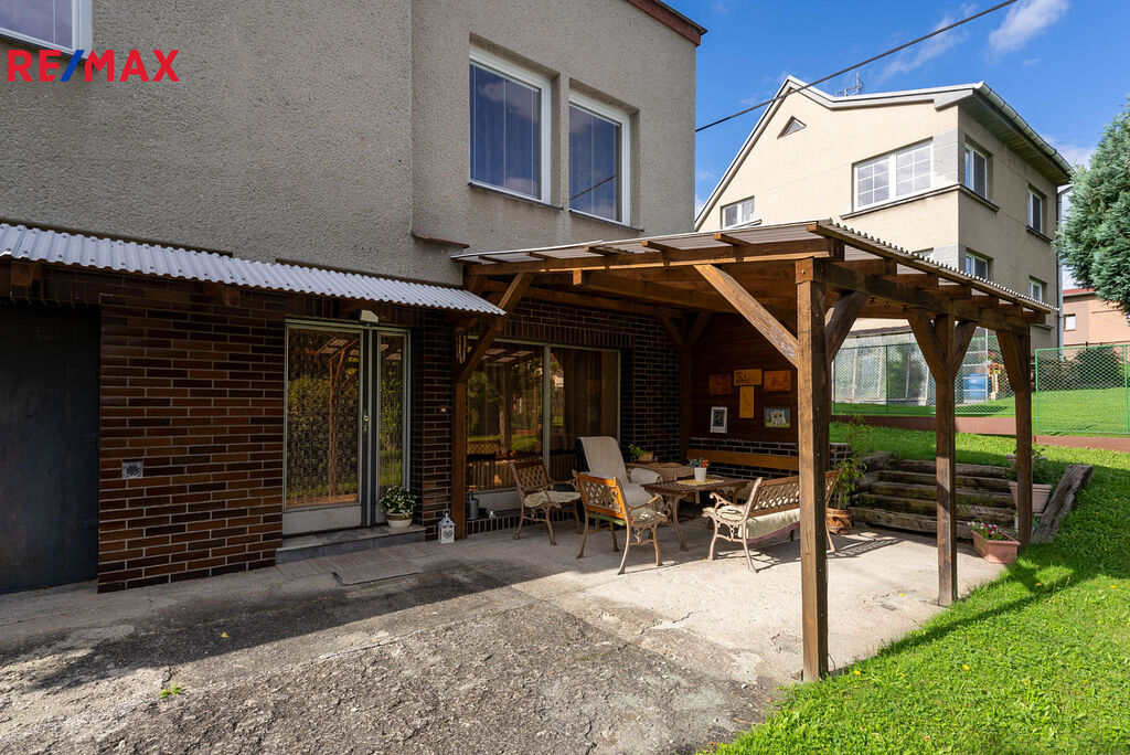 Před vstupem do domu se nachází zastřešená terasa, za domem hospodářská budova k uskladnění nářadí, sportovních potřeb a sezónních věcí. Kolem domu je pěkně upravená zahrada se spoustou zeleně.