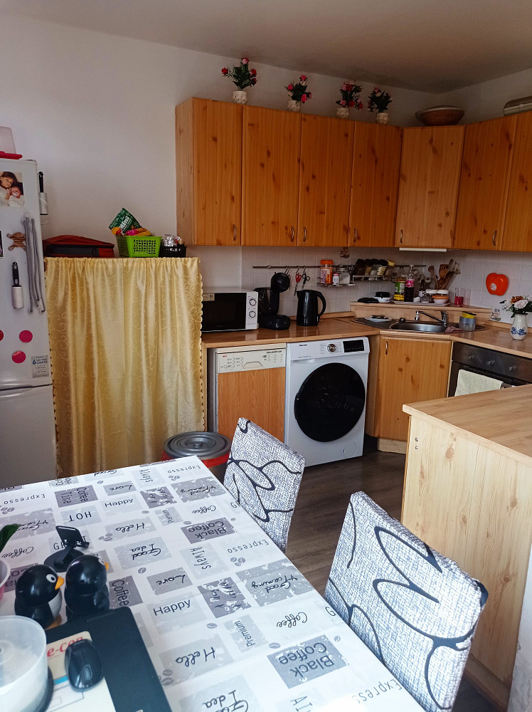 Dispozice: obývací pokoj, dvě ložnice, kuchyně a koupelna spojená s toaletou. K bytu náleží také komora, což zvyšuje komfort úložných prostor.