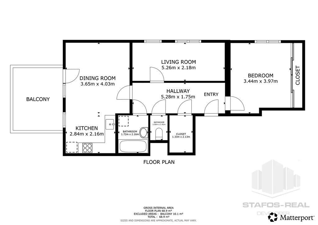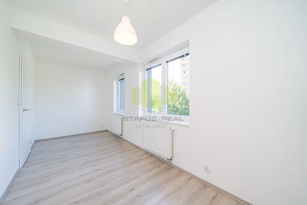 Byt je situován v prvním nadzemním podlaží a je orientován na severozápad. Vstup do jednotky vede do prostorné chodby, která je součástí bytu a ze které je přístup do všech místností. Na severní straně se nacházejí dvě ložnice, obývací pokoj je orientován na západ a disponuje přímým vstupem na balkon. Dispozici doplňuje praktická šatna s úložným systémem, samostatná toaleta a koupelna s vanou, kde je připravena instalace na pračku i sušičku. Jeden z pokojů je možné využít jako dětský, pracovnu nebo šatnu podle potřeb nového majitele.