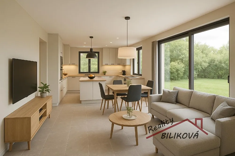 • Přízemí: veranda, chodba, kuchyně, obývací pokoj, ložnice, koupelna a WC.