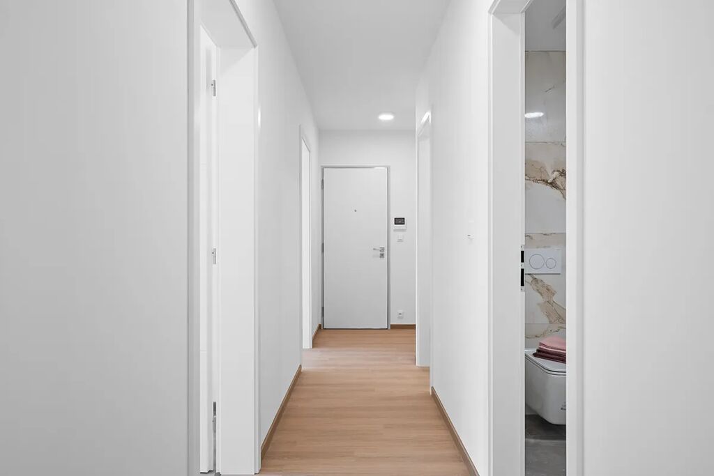 Všechny byty v projektu mají vysoký standard vybavení: kvalitní vinylové podlahy s akustickou podložkou, teplovodní podlahové vytápění, francouzská okna s izolačním trojsklem, moderní sanita značky Grohe, velkoformátové obklady v koupelnách atd.