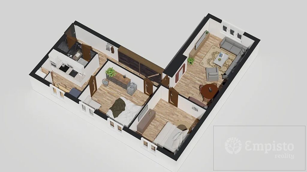 Nechte svou kreativitu volně plynout! Byt je v původním stavu a čeká, až ho proměníte v domov přesně podle svých představ. Pro inspiraci vám nabízíme dvě ukázky, jak by mohl vypadat. Jedna věc, na kterou se můžete spolehnout, je nová elektroinstalace.