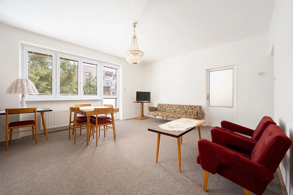 V obývacím pokoji a chodbě je položen nový koberec. V ložnicích jsou krásné dřevěné parkety.