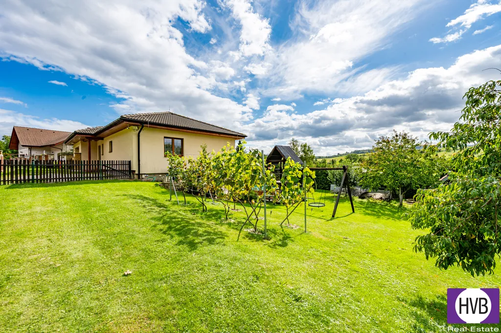 Částečně podsklepená cihlová stavba z roku 2014 splňuje veškeré podmínky komfortního bydlení. Dispozice: zádveří, vstupní chodba s vestavěnou skříní, obývací pokoj s krbem volně navazuje na plně vybavený kuchyňský kout, tři neprůchozí obytné místnosti, koupelna s vanou a sprchovým koutem, samostatná toaleta, technická místnost. V podkroví je úložný prostor přístupný přes skládací schůdky.