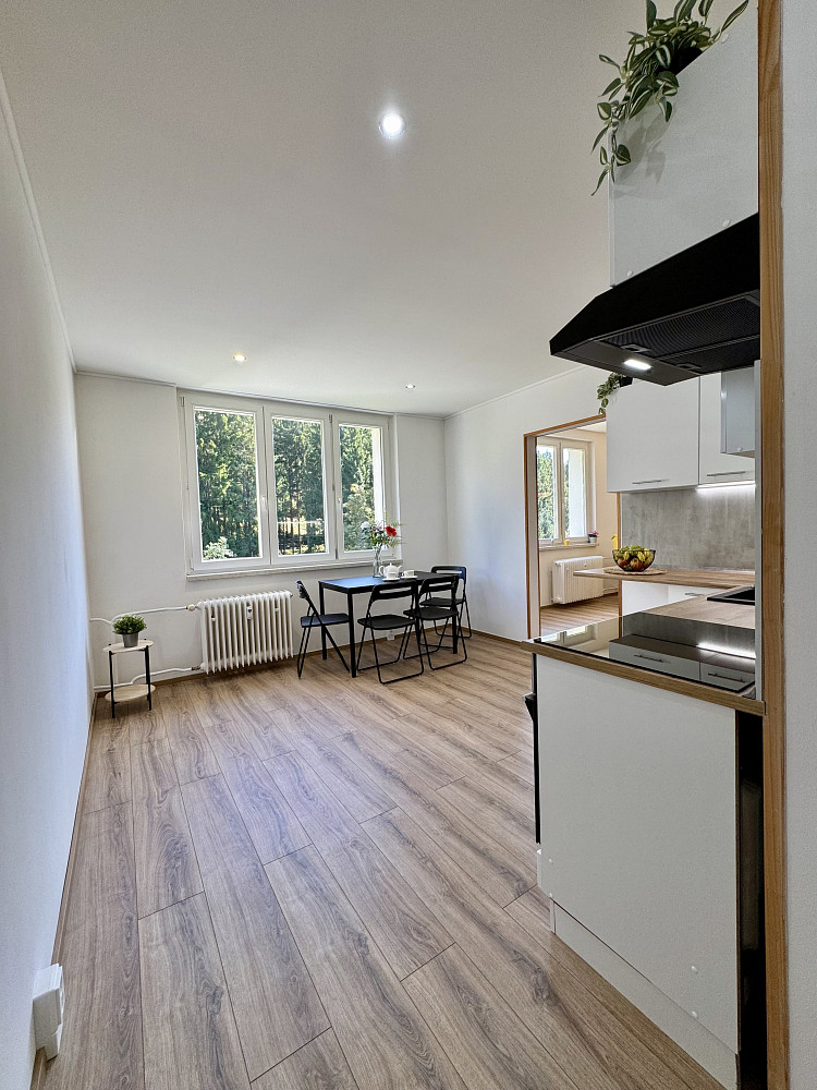 Byt je ideální volbou pro ty, kteří hledají klidné bydlení v přírodě s dobrou dostupností města.