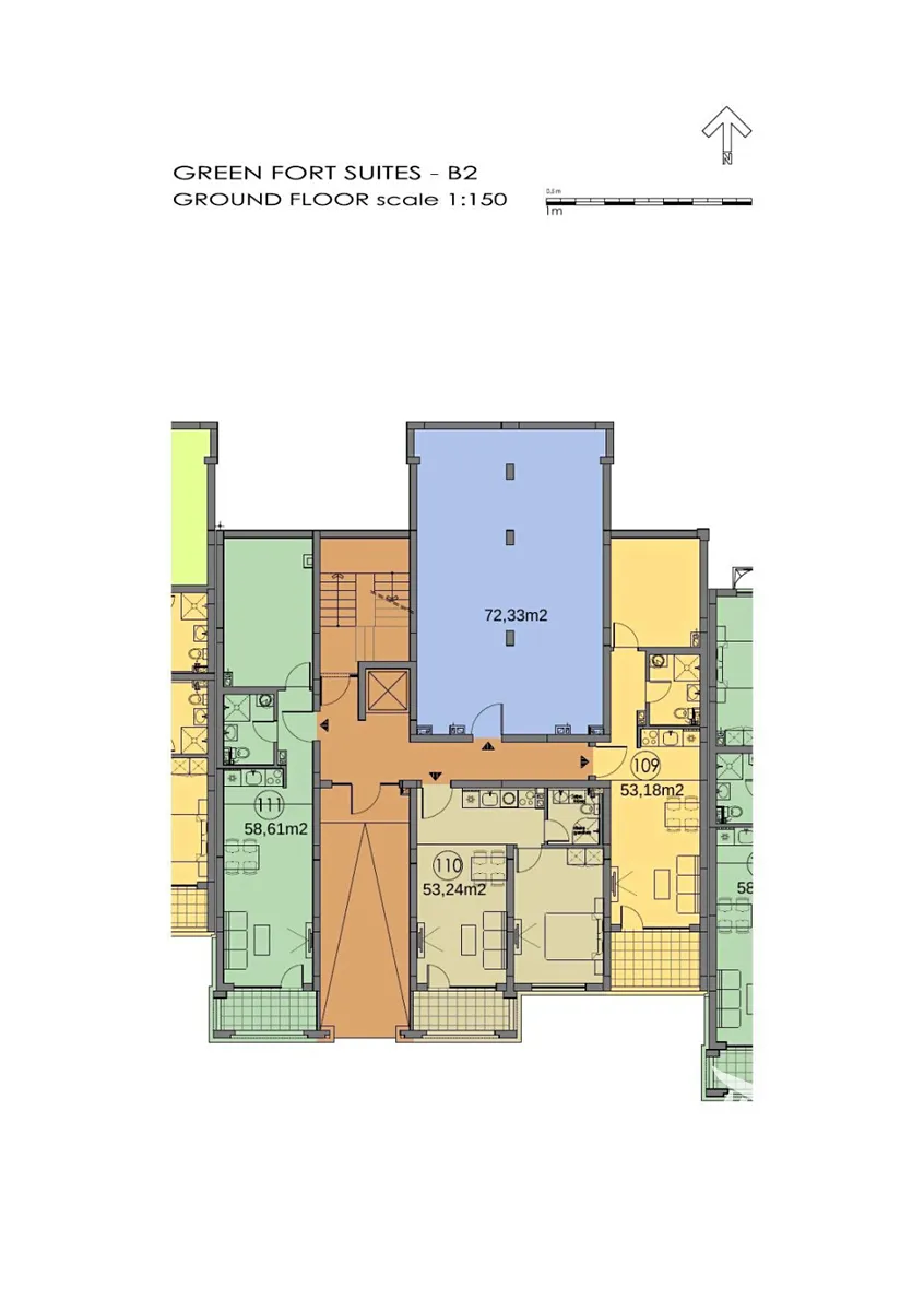 Nabízíme k prodeji komfortní apartmán o dispozici 2+kk s podlahovou plochou 62.06 m², umístěný přízemí v moderním rezidenčním komplexu Green Fort Suites společnosti Fort Knox.