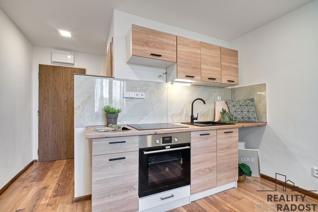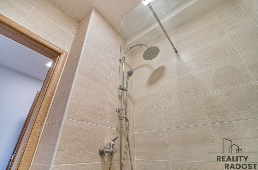 Byteček je skromný, ale pro jednotlivce nebo mladý pár který chce mít svoje, dostačující. Nabízí 20,5m2, pěknou koupelnou, prostorným pokojem a lodžií. 3 patro z celkových 9. vám zaručí že se nezadýcháte, ale pokud máte rádi pohodlí, je k dispozici výtah.